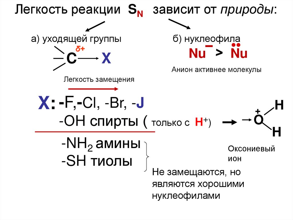 Легкость реакции SN зависит от природы:а) уходящей группы