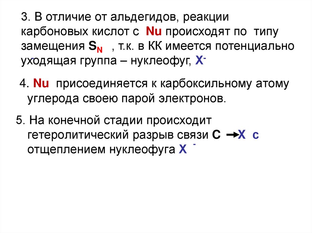 3. В отличие от альдегидов, реакциикарбоновых кислот с Nu происходят по типу
