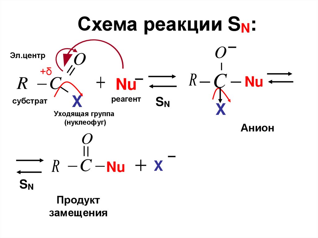 Схема реакции SN:Эл.центр