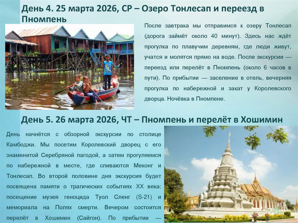 День 4. 25 марта 2026, СР – Озеро Тонлесап и переезд вПномпень