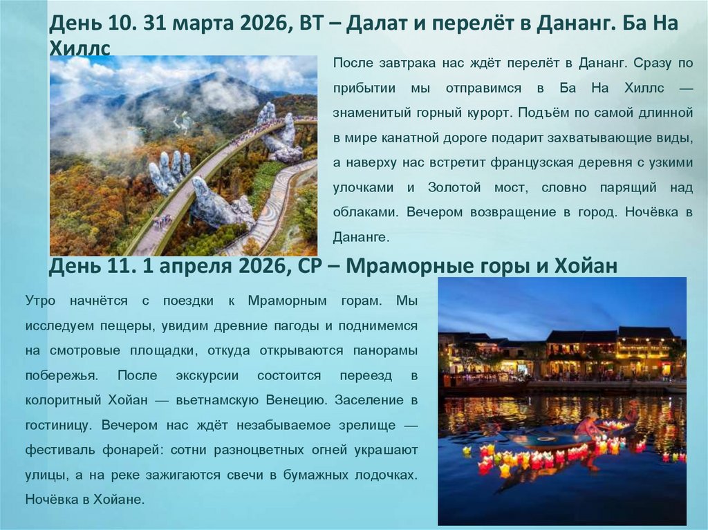 и современный Дананг с мостом-драконом и Ба На Хиллс.