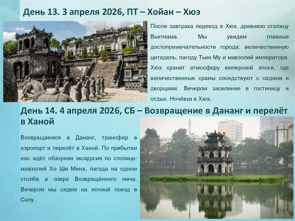 и легендарная бухта Халонг. За 20 дней вы увидите величие древних