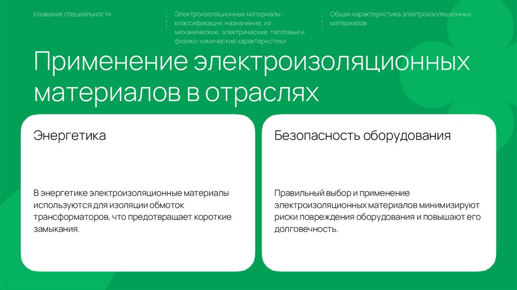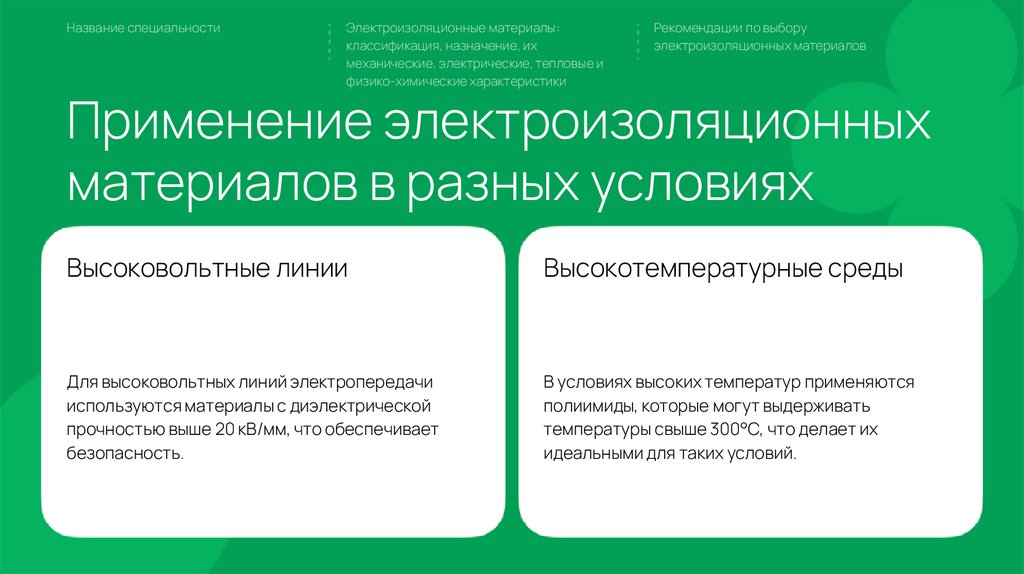 Название специальностиЭлектроизоляционные материалы: