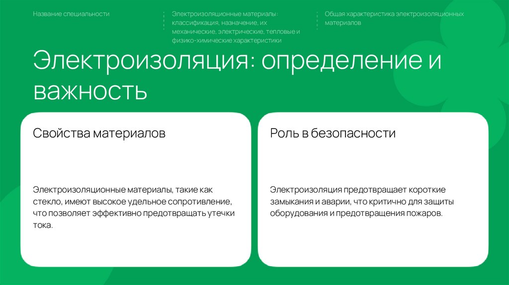 электроизоляционных материалов, их свойства и