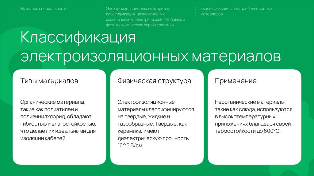 Электроизоляционные материалы_ классификация, назначение, их механические, электрические, тепловые и физико-химические характеристики