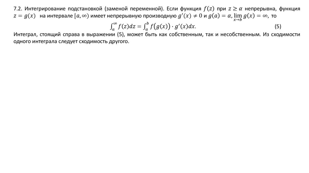 бесконечных интервалов интегрирования.