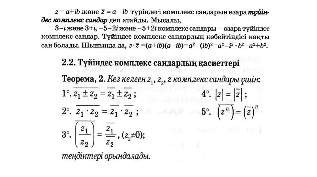 11.1.1.3 - түйіндес комплекс сандар анықтамасы мен олардың қасиеттерін білу;