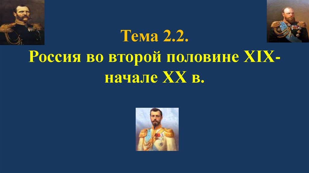 Тема 2.2.Россия во второй половине XIXначале XX в.