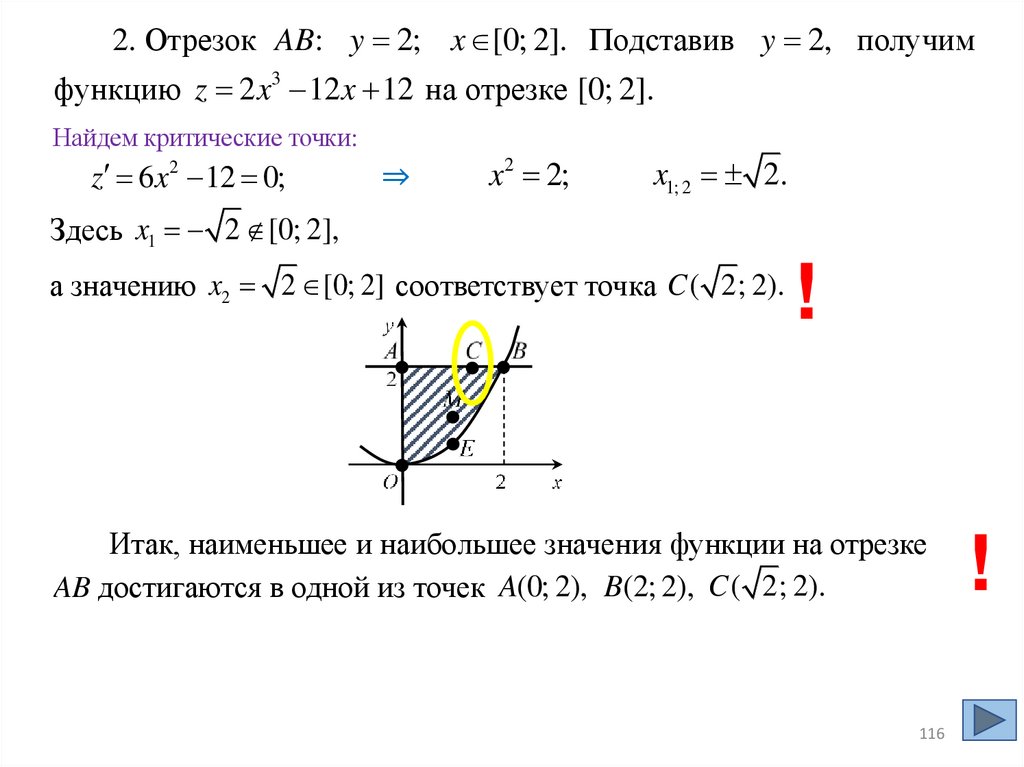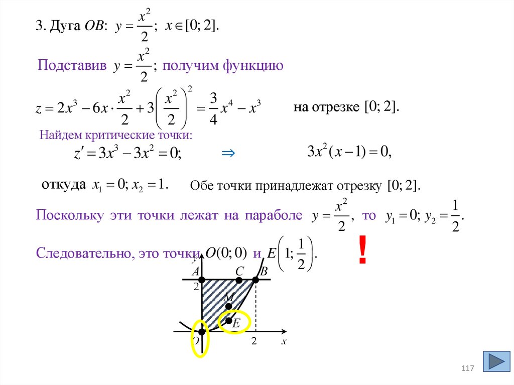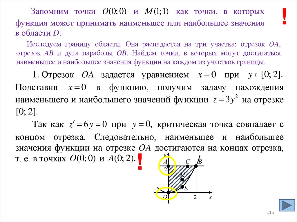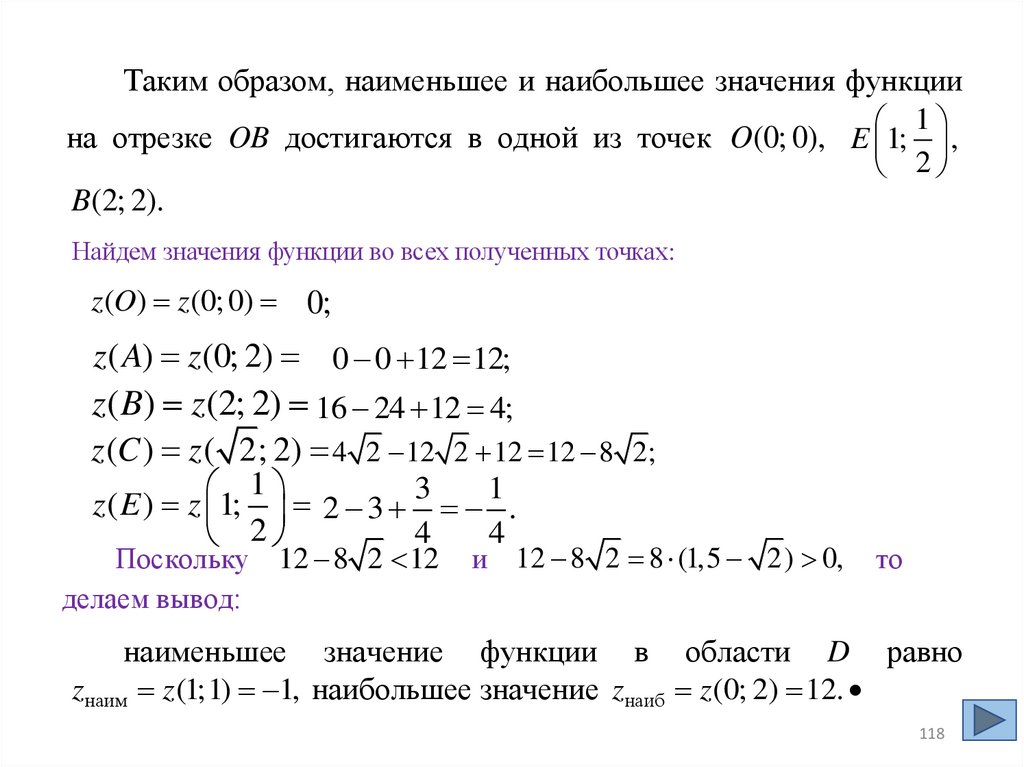 на отрезке OB достигаются в одной из точек O(0; 0), E 1; ,