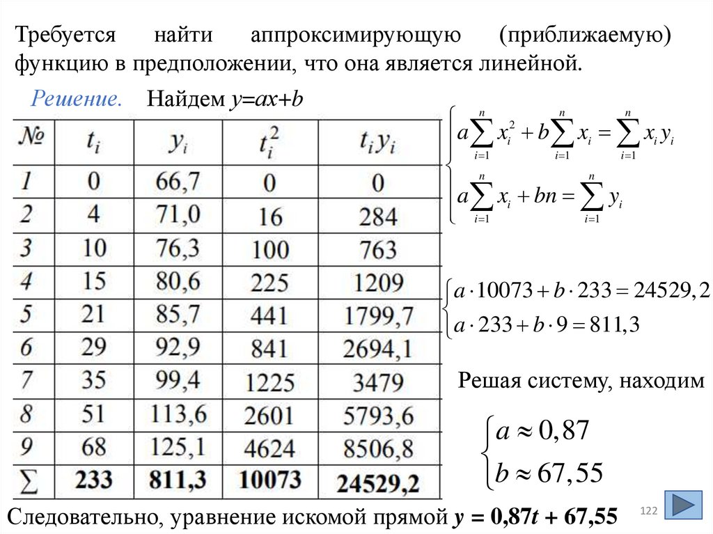 Следовательно, уравнение искомой прямой y = 0,87t + 67,55