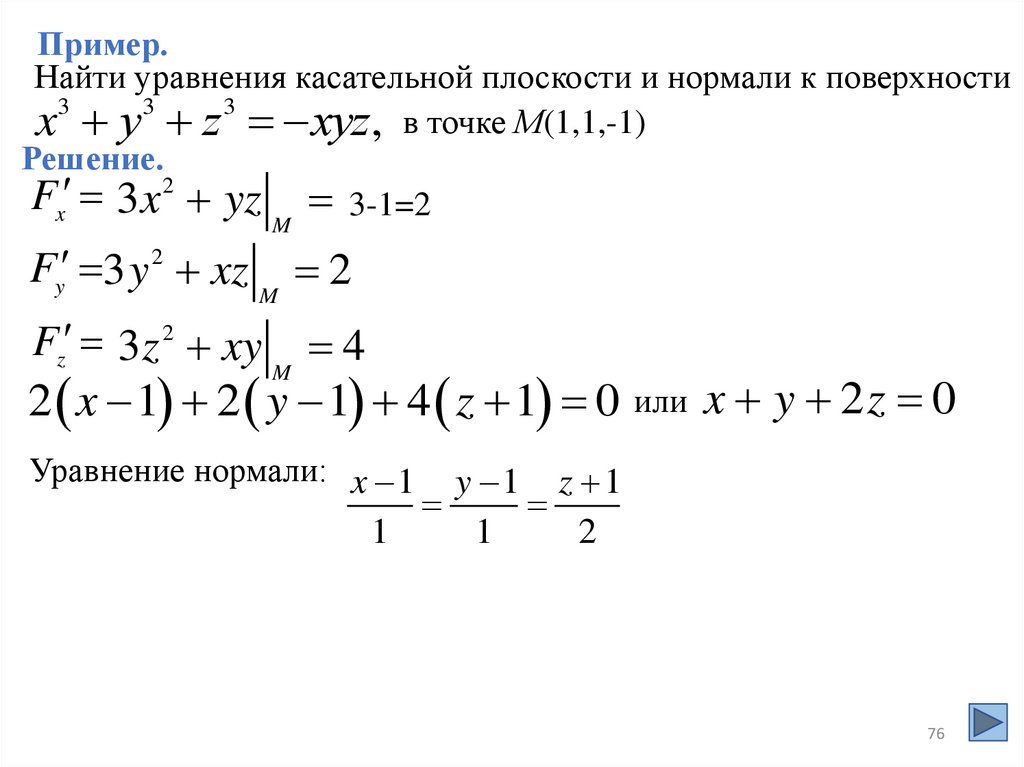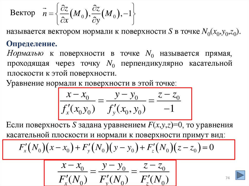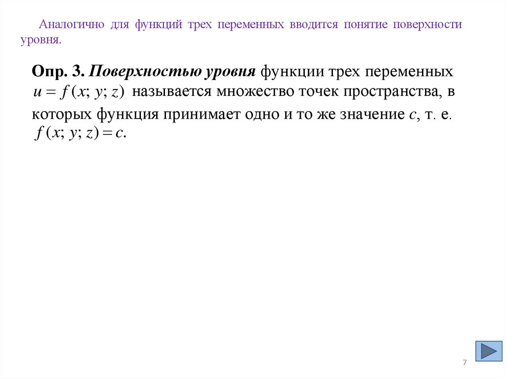 Аналогично для функций трех переменных вводится понятие поверхностиуровня.