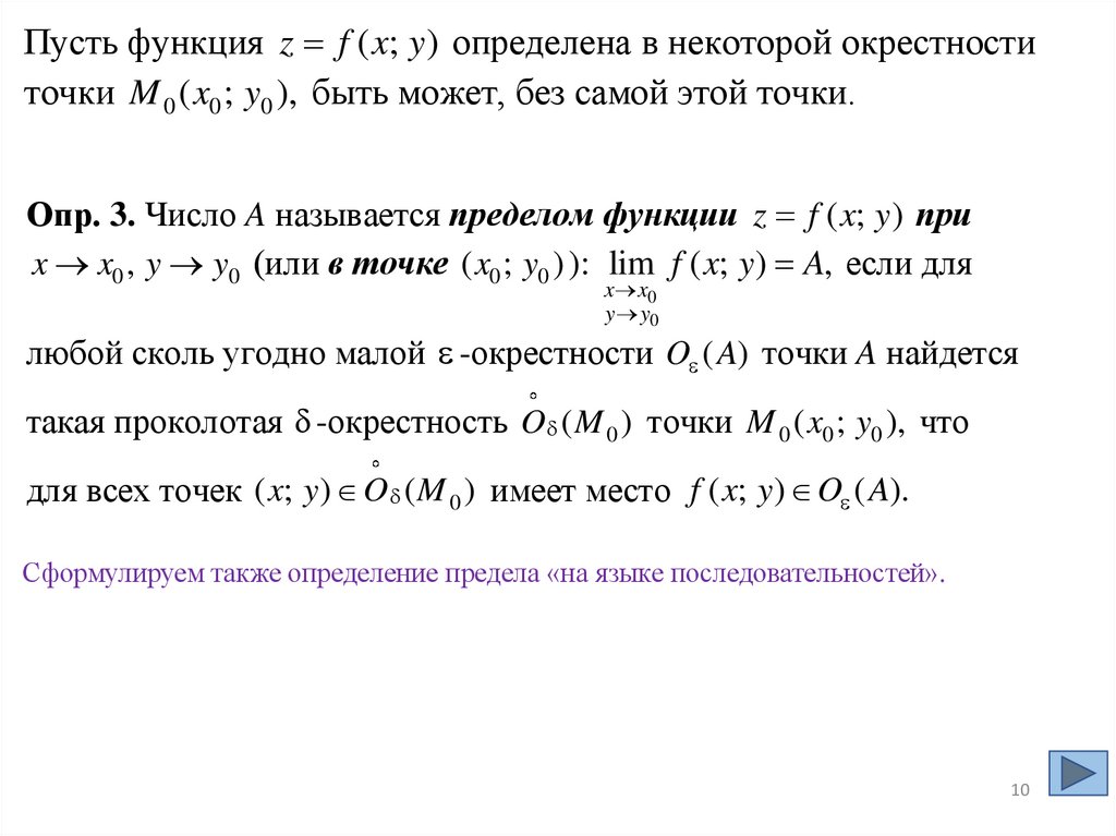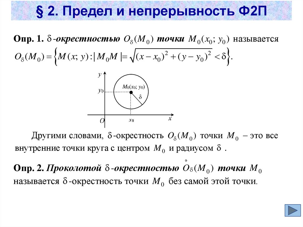 § 2. Предел и непрерывность Ф2ПОпр. 1. -окрестностью O ( M 0 ) точки M 0 ( x0 ; y0 ) называется