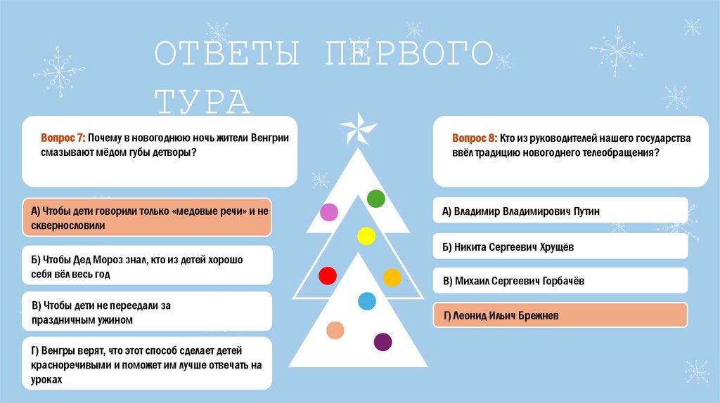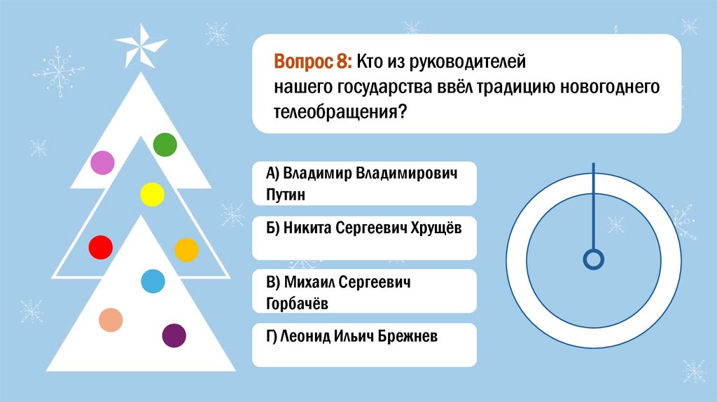Вопрос 8: Кто из руководителейнашего государства ввёл традицию новогоднего
