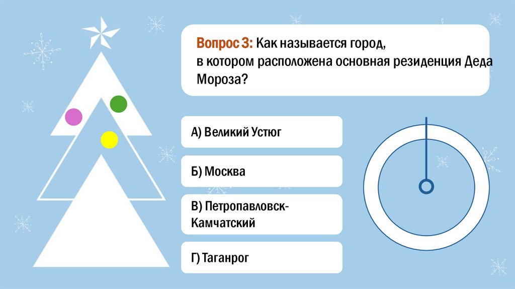 Вопрос 3: Как называется город,в котором расположена основная резиденция Деда