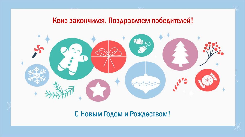 Квиз закончился. Поздравляем победителей!С Новым Годом и Рождеством!