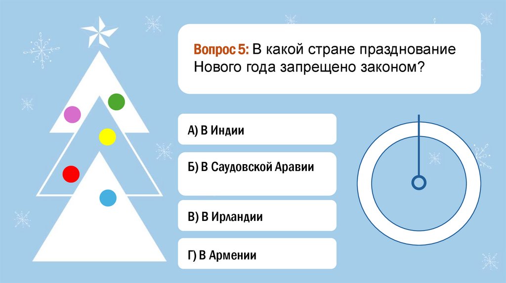 Вопрос 5: В какой стране празднованиеНового года запрещено законом?