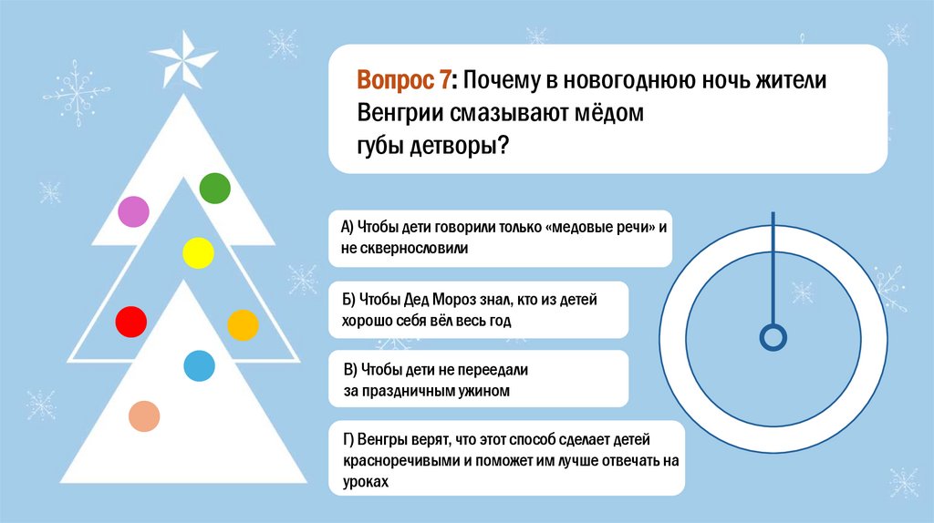Вопрос 7: Почему в новогоднюю ночь жителиВенгрии смазывают мёдом