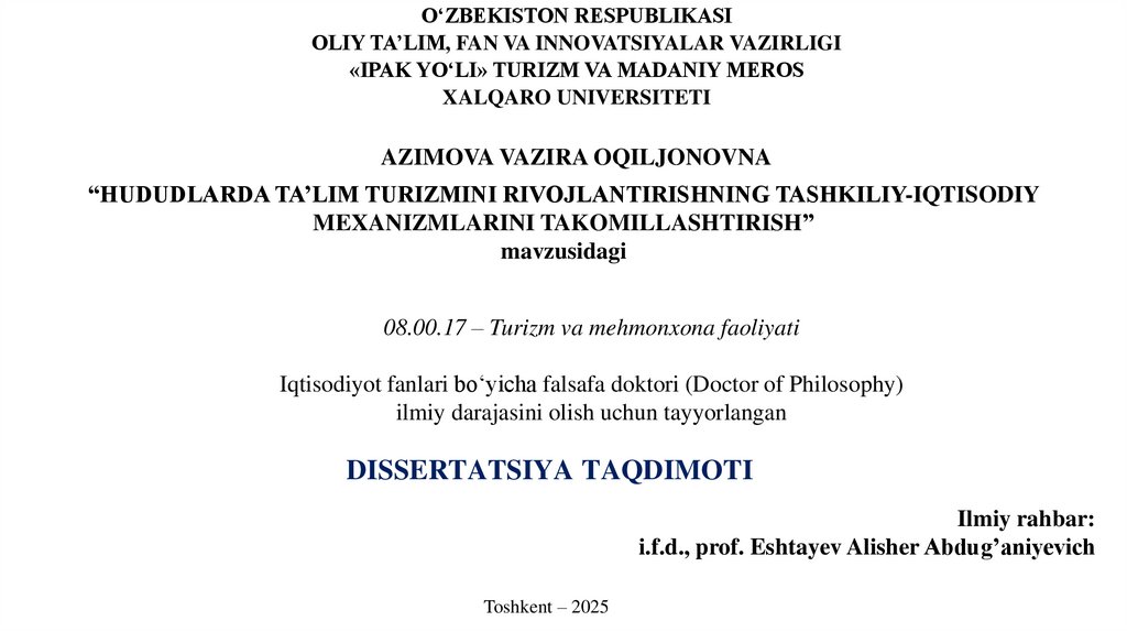 DISSERTATSIYA TAQDIMOTI