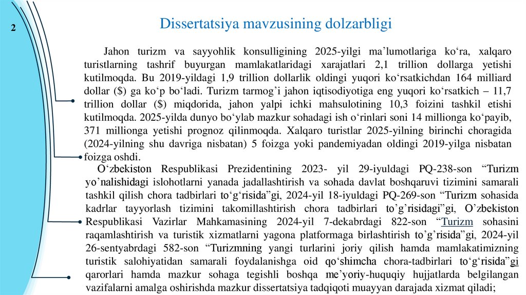 2Dissertatsiya mavzusining dolzarbligi