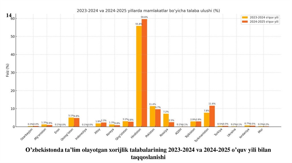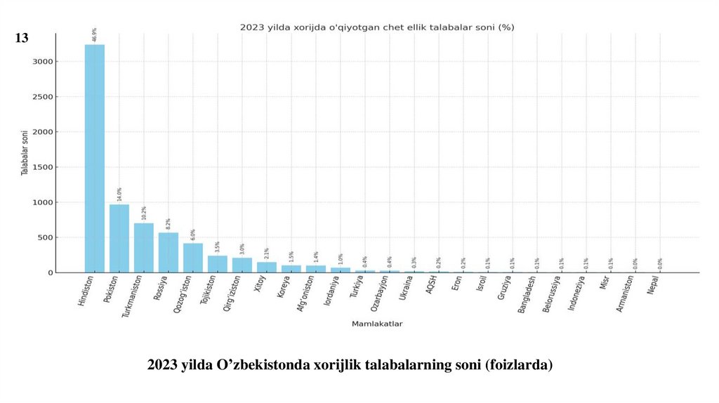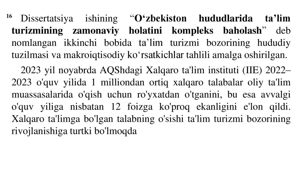 26. O‘zbekistonda ta’lim turizmiga qiziqish ortib bormoqda. Bunga asosan quyidagilar turtki bo’lmoqda: