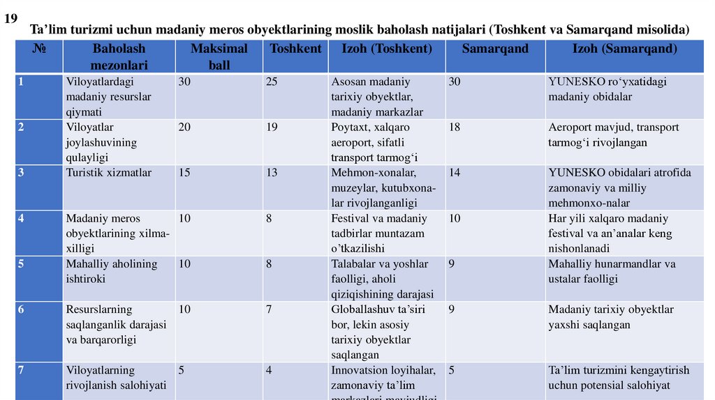 turistlik salohiyati va ta’lim
