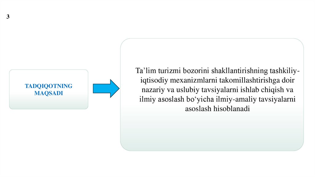 bo’yicha ilmiy-amaliy tavsiyalar ishlab chiqish;