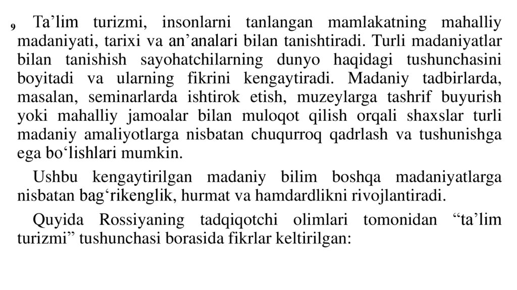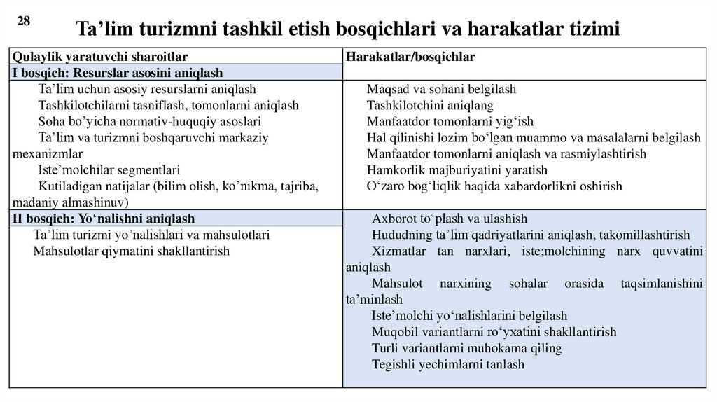 28Ta’lim turizmni tashkil etish bosqichlari va harakatlar tizimi