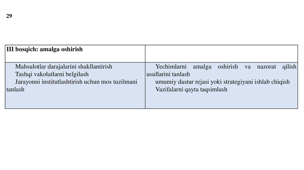 29III bosqich: amalga oshirish
