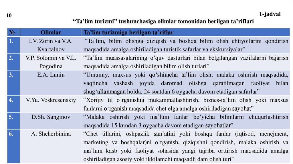 Ta’lim turizmini rivojlantirishning ilmiy-nazariy asoslarini