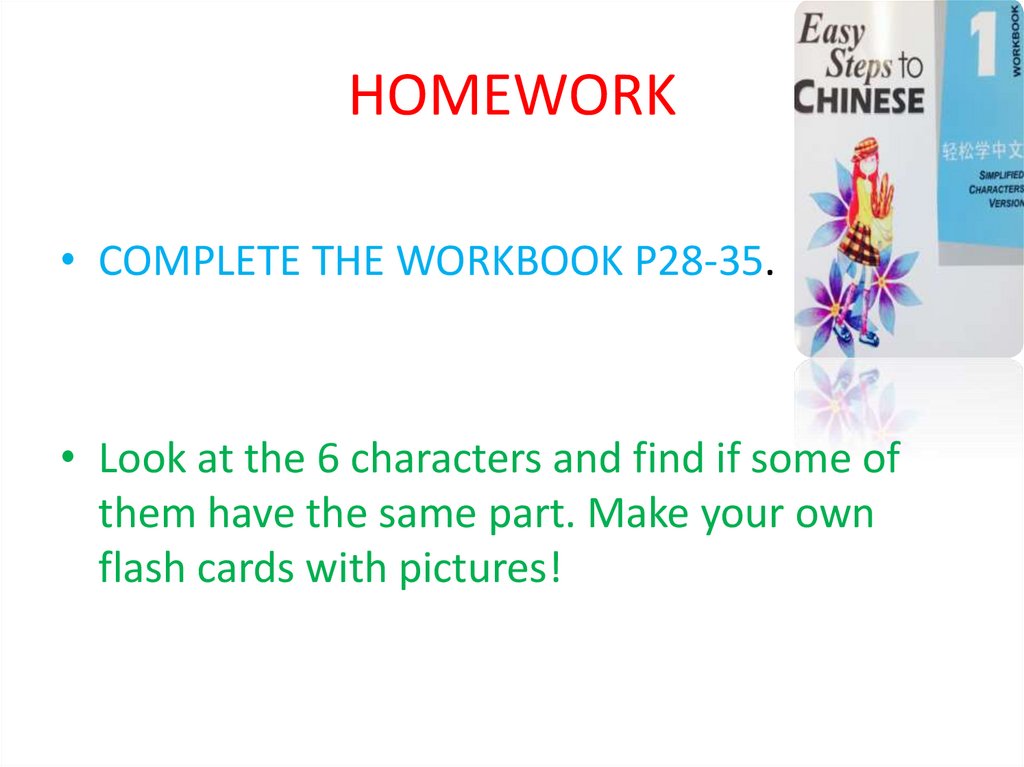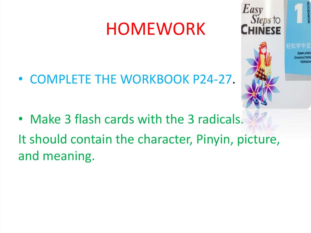 HOMEWORK• COMPLETE THE WORKBOOK P24-27.