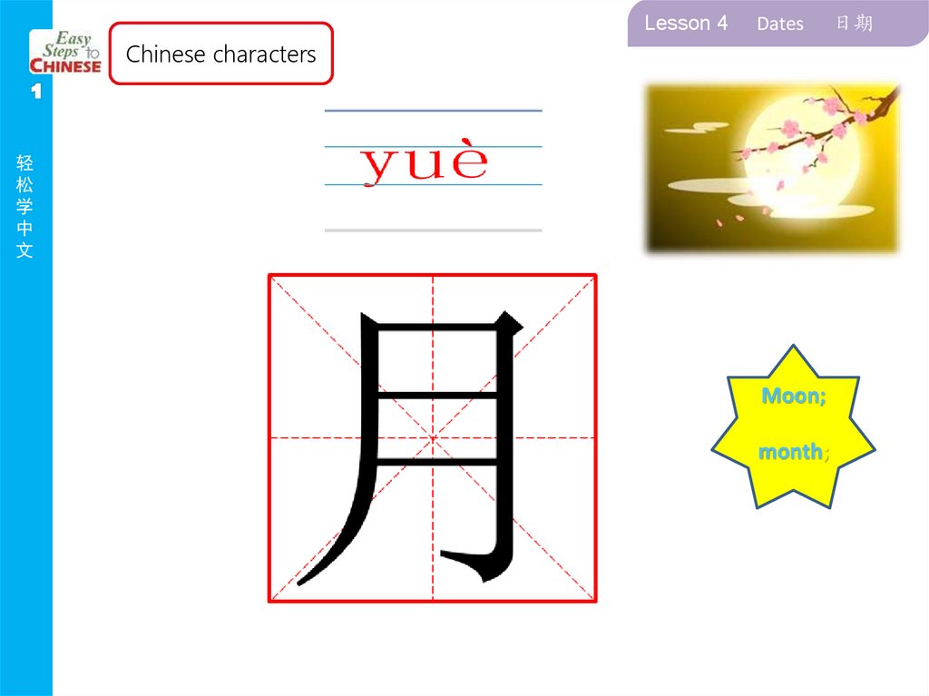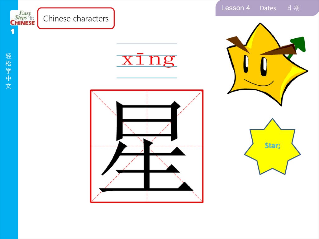It should contain the character, Pinyin, picture,