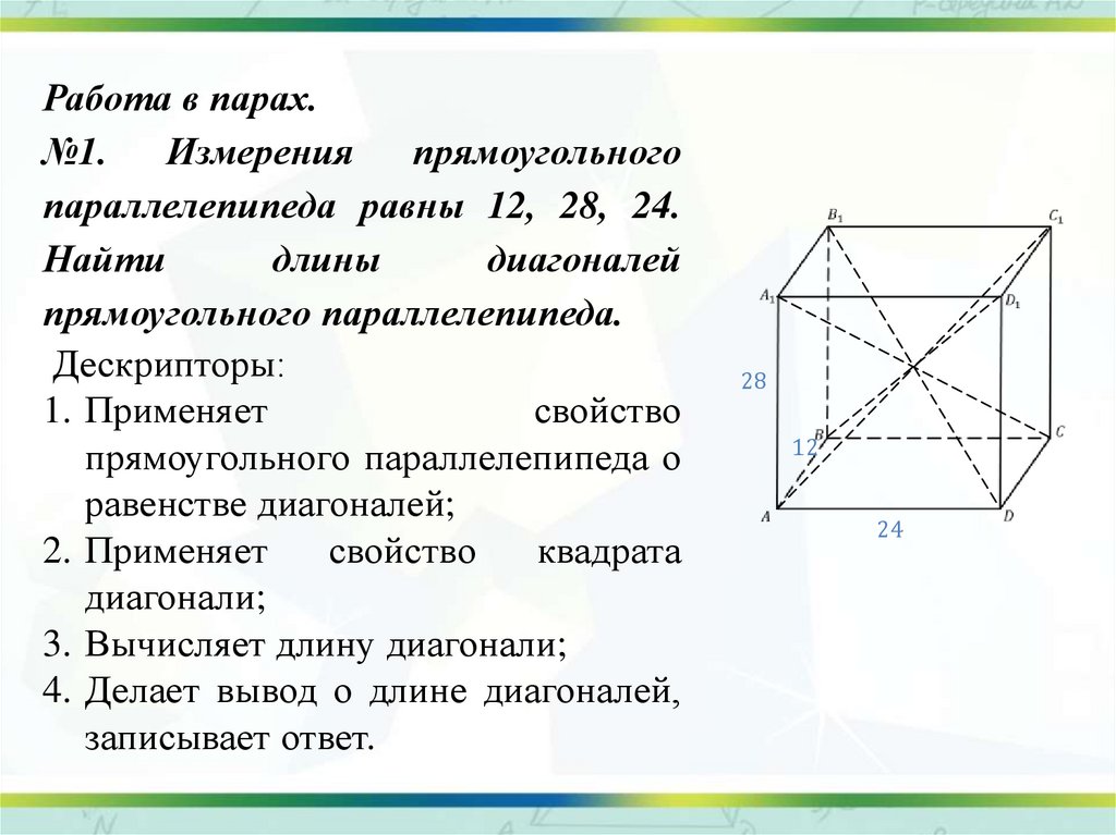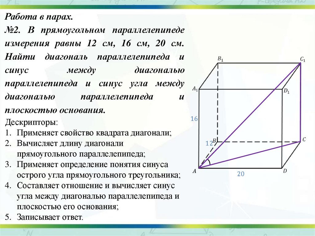 Работа в парах.№2. В прямоугольном параллелепипеде