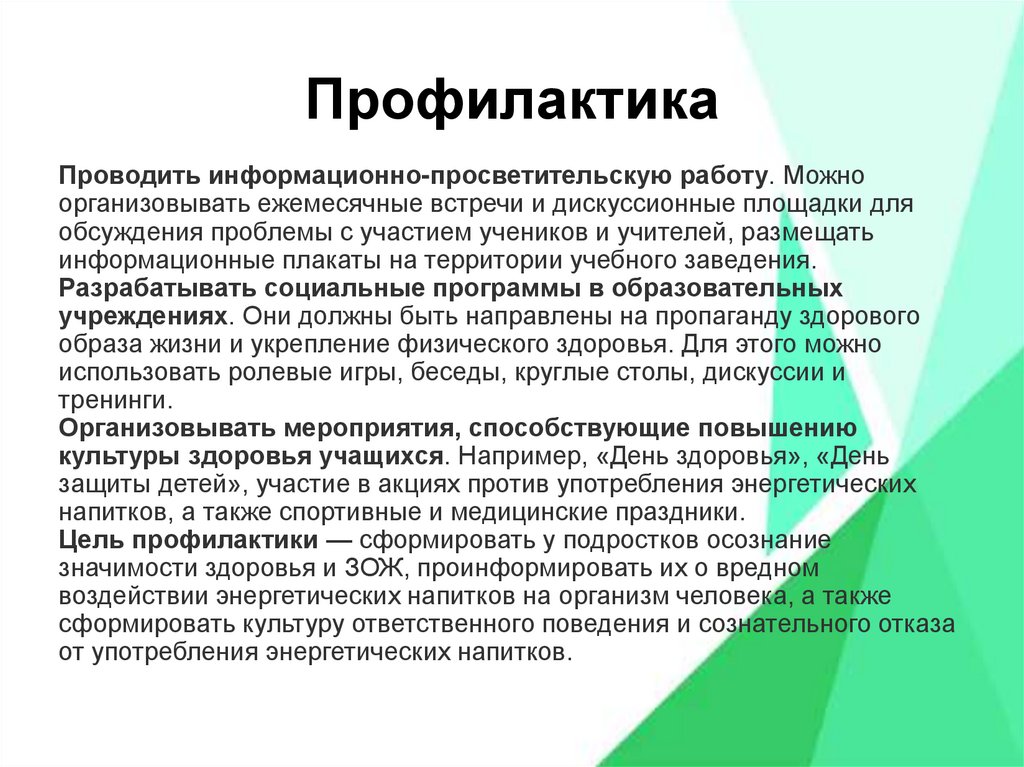 ПрофилактикаПроводить информационно-просветительскую работу. Можно