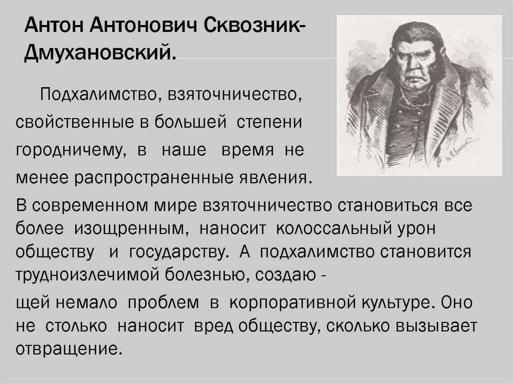 Антон Антонович СквозникДмухановский.Подхалимство, взяточничество,