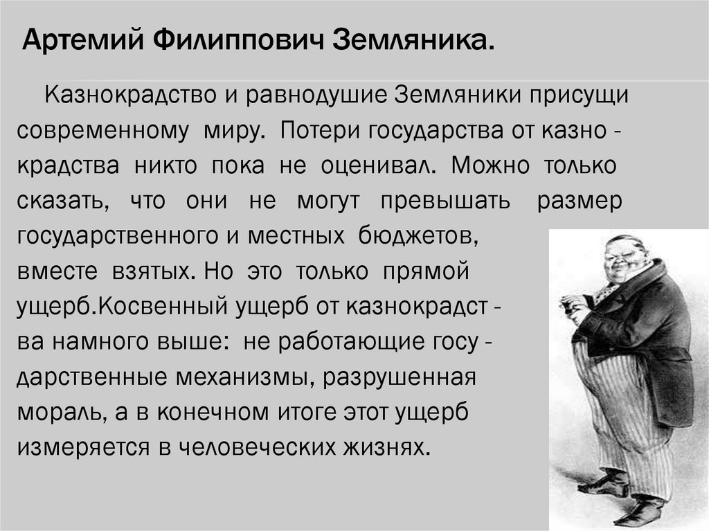 Артемий Филиппович Земляника.Казнокрадство и равнодушие Земляники присущи