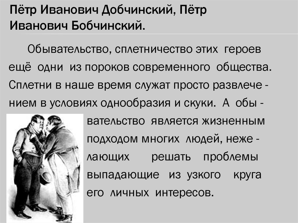 Обывательство, сплетничество этих героев