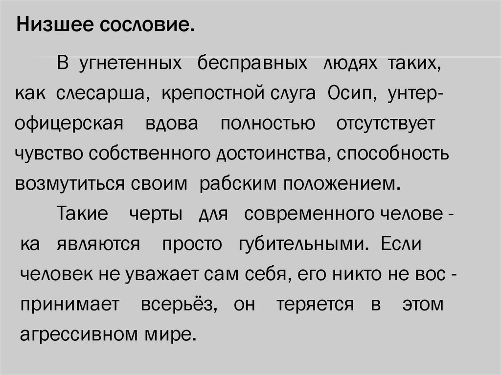 Низшее сословие.В угнетенных бесправных людях таких,