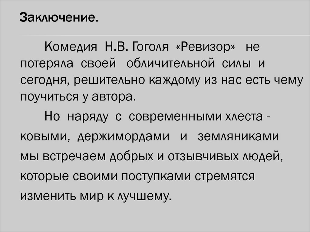 Заключение.Комедия Н.В. Гоголя «Ревизор» не