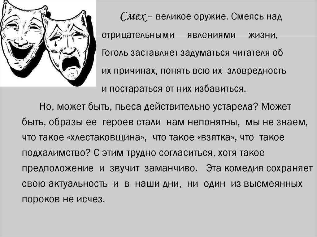 Актуальность проблем комедииН.В.Гоголя «Ревизор» в наше время.