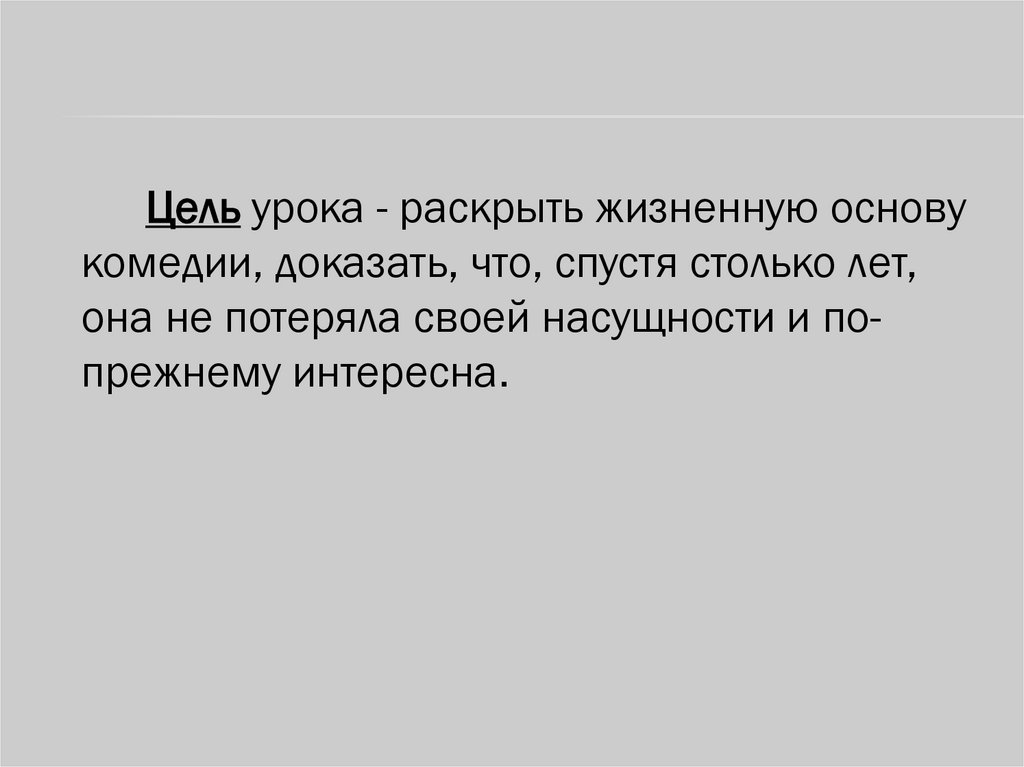 Цель урока - раскрыть жизненную основукомедии, доказать, что, спустя столько лет,