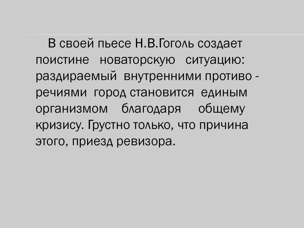 В своей пьесе Н.В.Гоголь создаетпоистине новаторскую ситуацию: