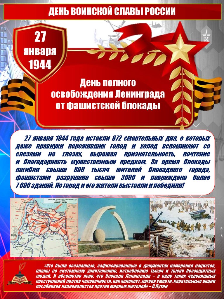 27 января 1944 года истекли 872 смертельных дня, о которых