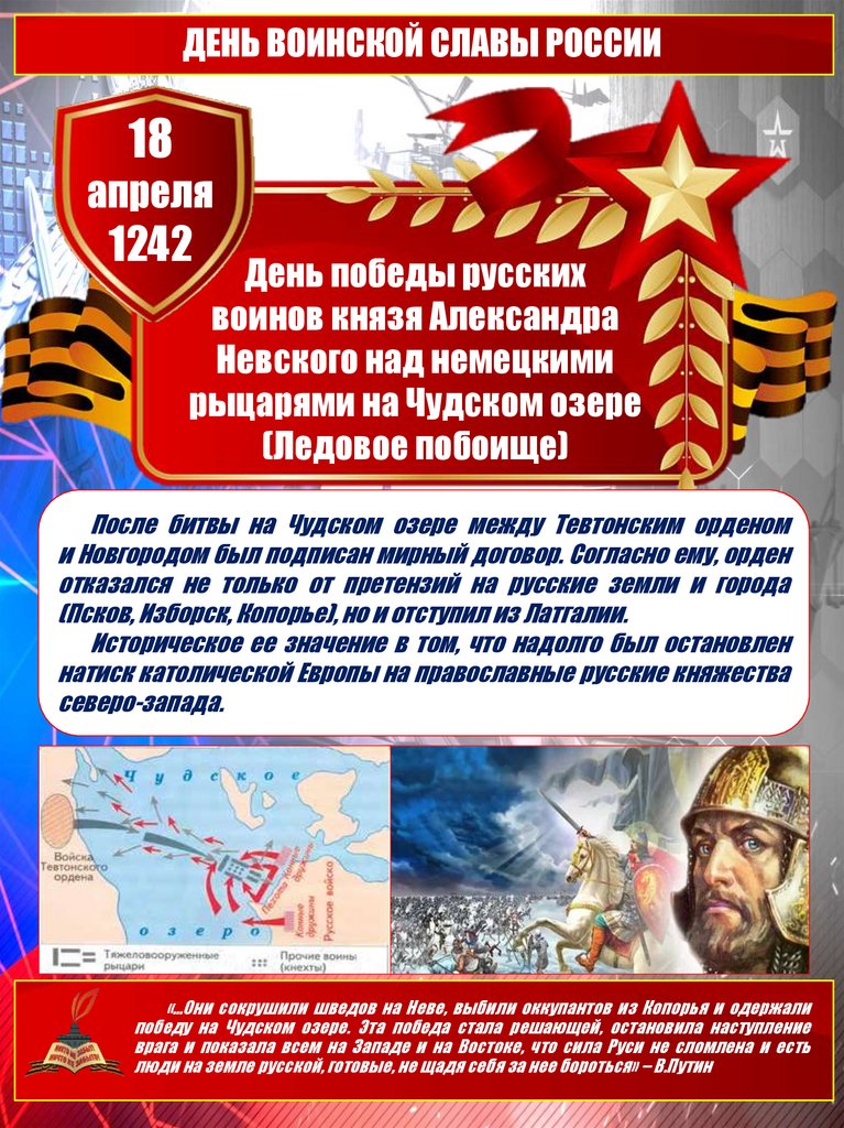 победу на Чудском озере. Эта победа стала решающей, остановила наступление