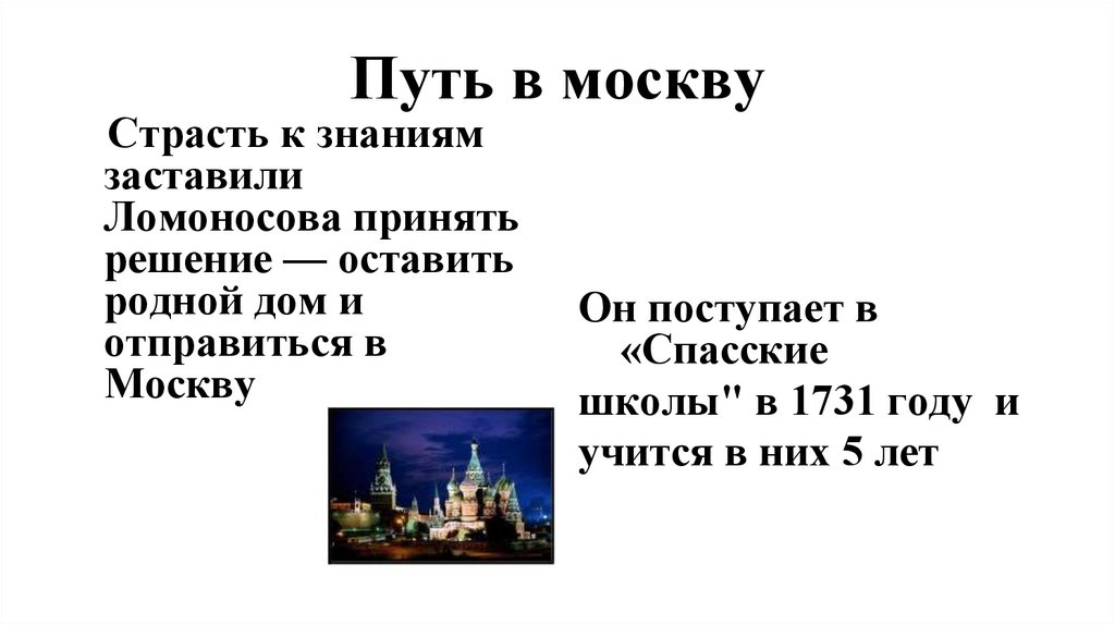 Путь в москвуСтрасть к знаниям