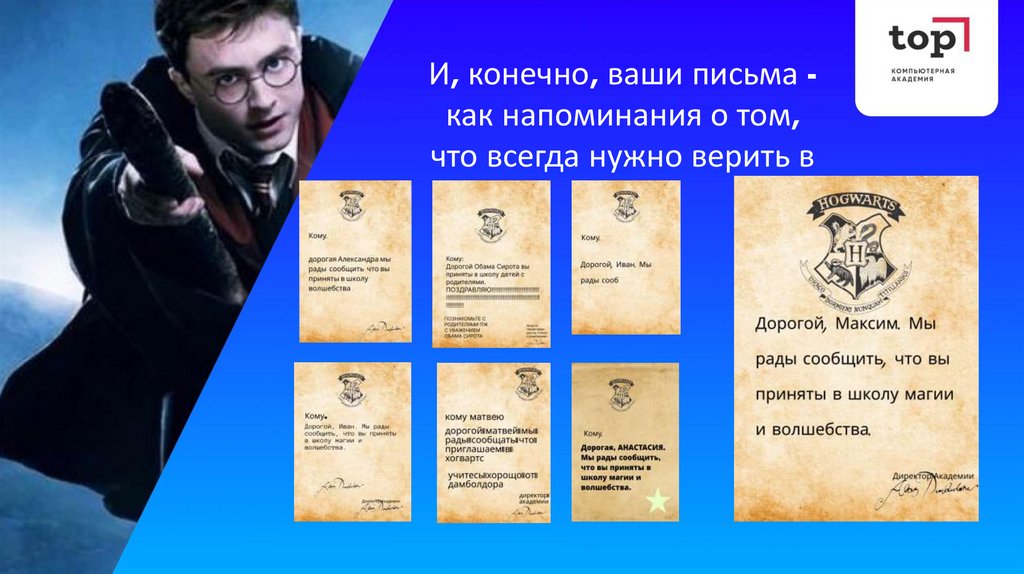 И, конечно, ваши письма как напоминания о том,что всегда нужно верить в