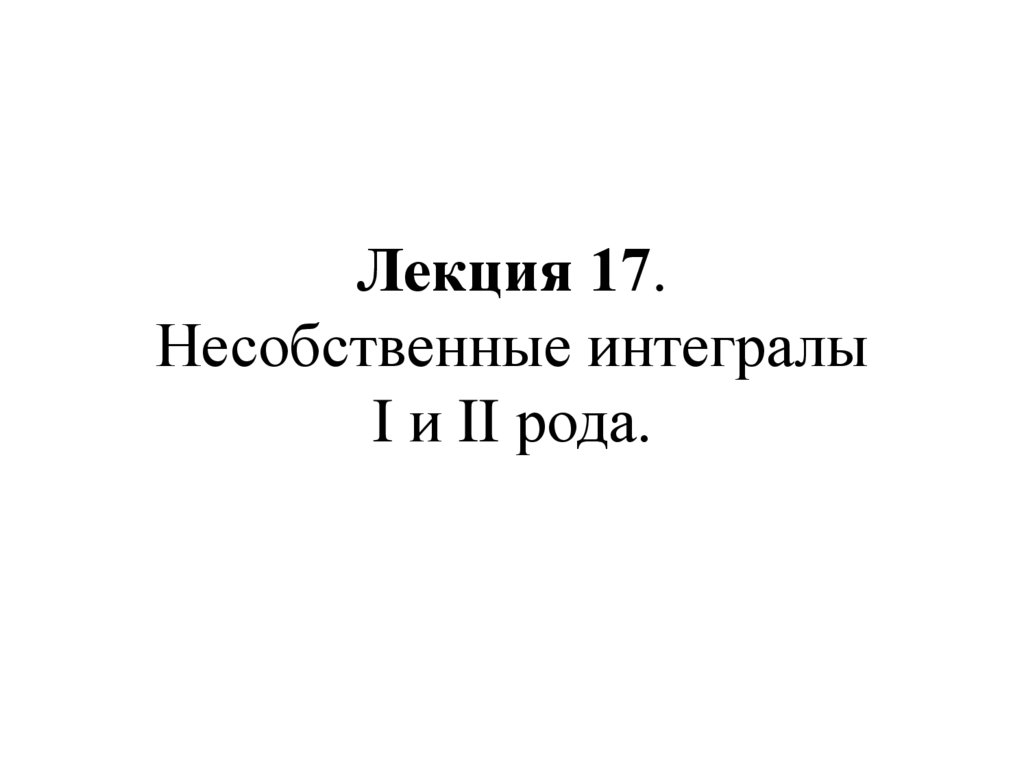 1. Лекция 17. Несобственные интегралы I и II рода.