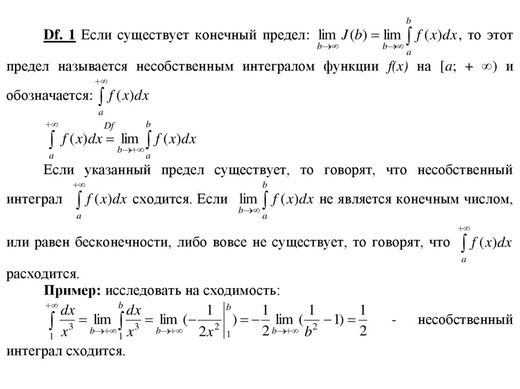указанный предел является конечным числом, то интеграл сходится, иначе