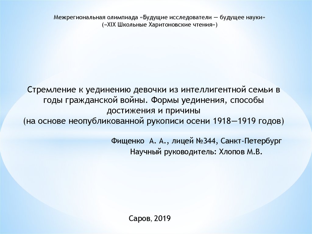 Межрегиональная олимпиада «Будущие исследователи — будущее науки»(«XIX Школьные Харитоновские чтения»)