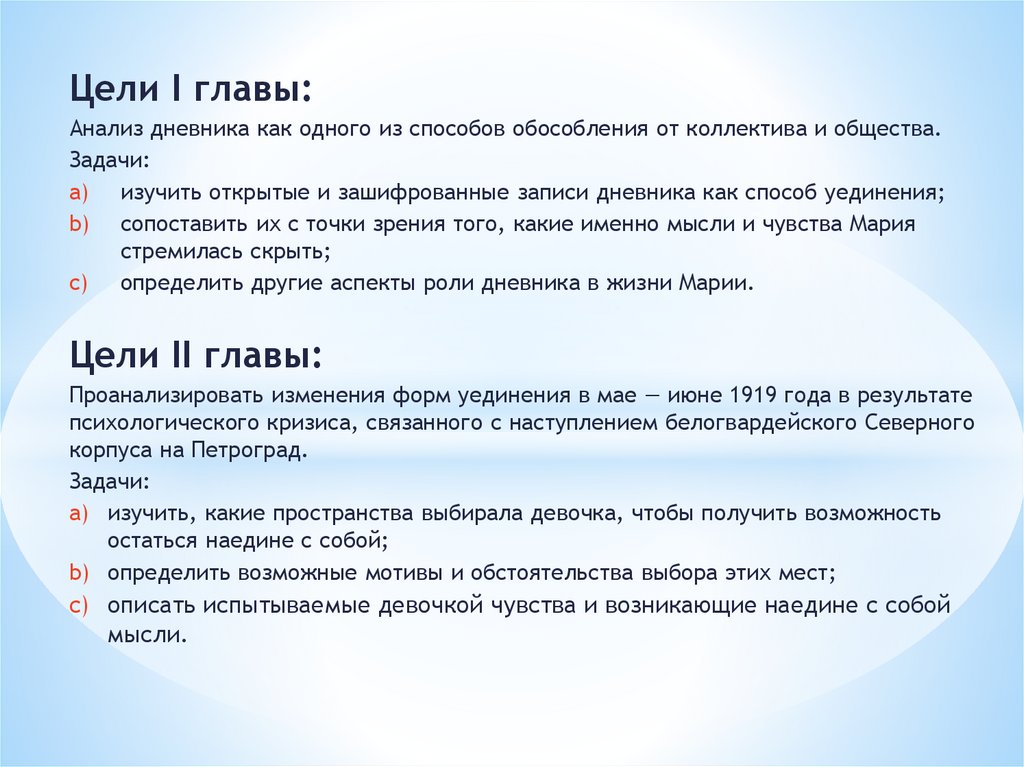 Цели I главы:Анализ дневника как одного из способов обособления от коллектива и общества.