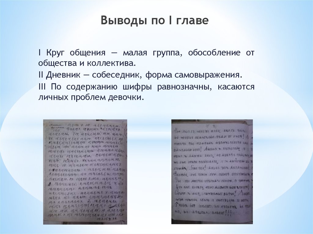 Выводы по I главеI Круг общения — малая группа, обособление от